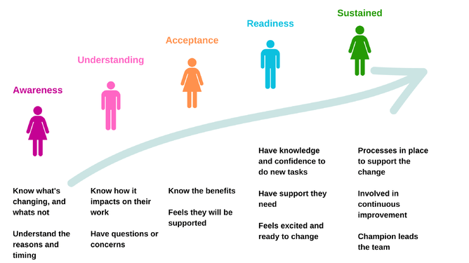 · Understand where each of your staff is at along the change adoption curve will help to know what support they require.