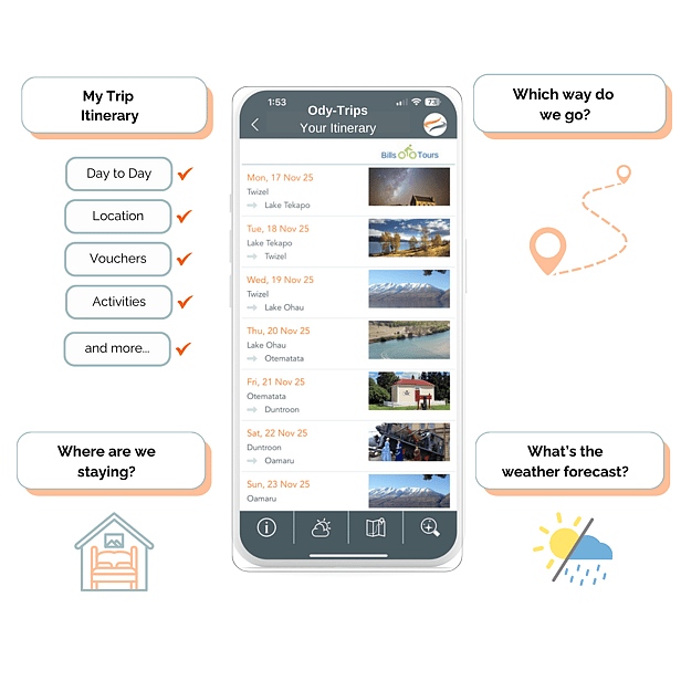 Odyssey's mobile app pushes travel itineraries directly to customers' devices, offering a convenient way to access trip details, check schedules, and receive live updates, enriching their travel experience while ensuring they have all necessary information at their fingertips.