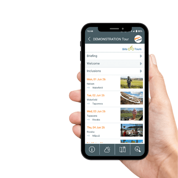 Receive access to the Ody Trips demo app. Odyssey integrates directly with Ody Trips mobile app providing a full day to day itinerary. You can also view maps, weather and much more. Plus integrate with your existing mapping app software. Experience what your customers expect in a fit-for-purpose mobile app.