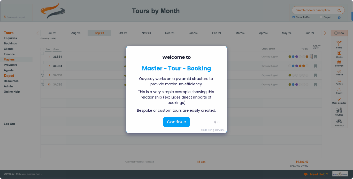 They have been designed as an introduction to Odyssey. These are just a sample of how Odyssey can help your business. There are many more features and functions within Odyssey to help manage multi-day tours.