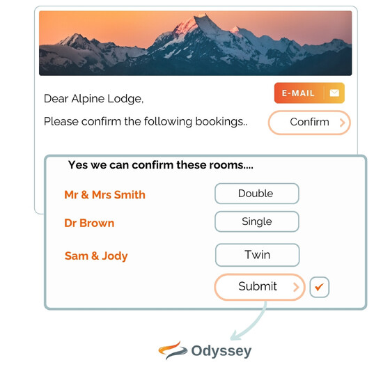 Odyssey has custom-built communication workflows that ensure that important reservations confirmations are recorded directly into our system. Email templates with online forms are the most efficient way to communicate with accommodation and activity suppliers.