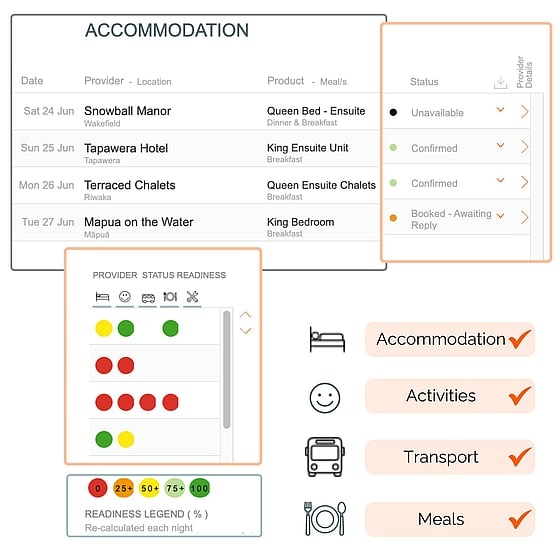 Traffic Light SystemOne of the great strengths of Odyssey is the visual appeal of our dashboards. Colour coding plays a strong role in quickly identifying the accommodation status and readiness of each provider. This simplifies rooming list management.
